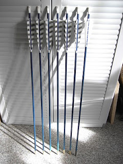 Finally got the nocks and was able to finish my first two sets of arrows. And the best is that I already tested them and they are perfect! So after the indoor testing they will go outdoors tomorrow. I'm so happy that they're finally finished! :-)