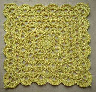 Enjoying the week-long CAL by Mon Cherie Crochet called Simply Squared CAL. Beautiful pattern, which can be made from doily size to blanket size, depending on the yarn you use. I made it with sunny yellow cotton thread and a 3.5 mm hook, which makes it about placemat/mugrug size. Love it!