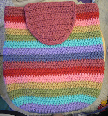 My niece's birthday is at the end of December and I crocheted a bag for her. I basically used the pattern for the Attic 24 Weekend Bag and made some adjustments to it, concerning the handle, the closure and the flower embellishment. I used leftover yarn from my Gorgeous Granny Bag, which Im made for me some months ago. I hope she likes the bag.