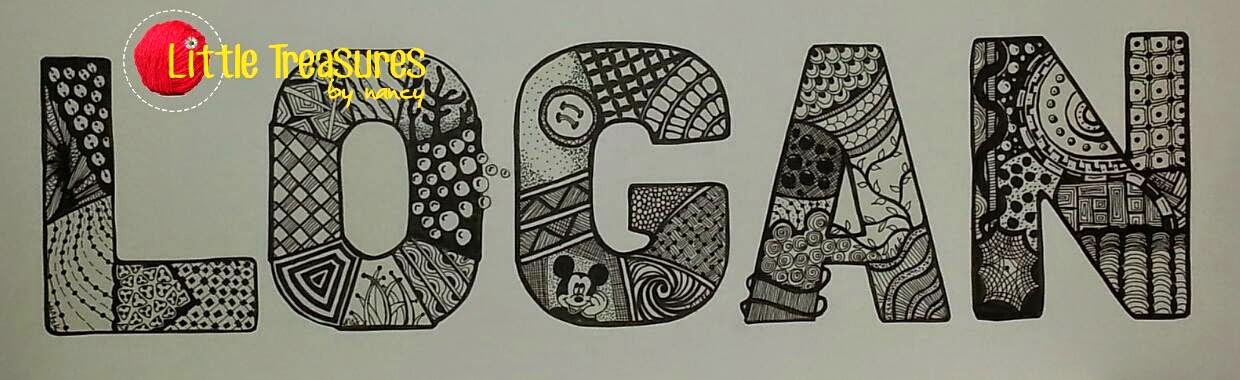 I was inspired doing this zentangles by the wonderful and talented Nancy of Little Treasures by Nancy. Aren't her name zentangles shown below fun? She draws them and then mounts them on a board for durability. But that's not her only talent. If you are on Facebook, check out her page!