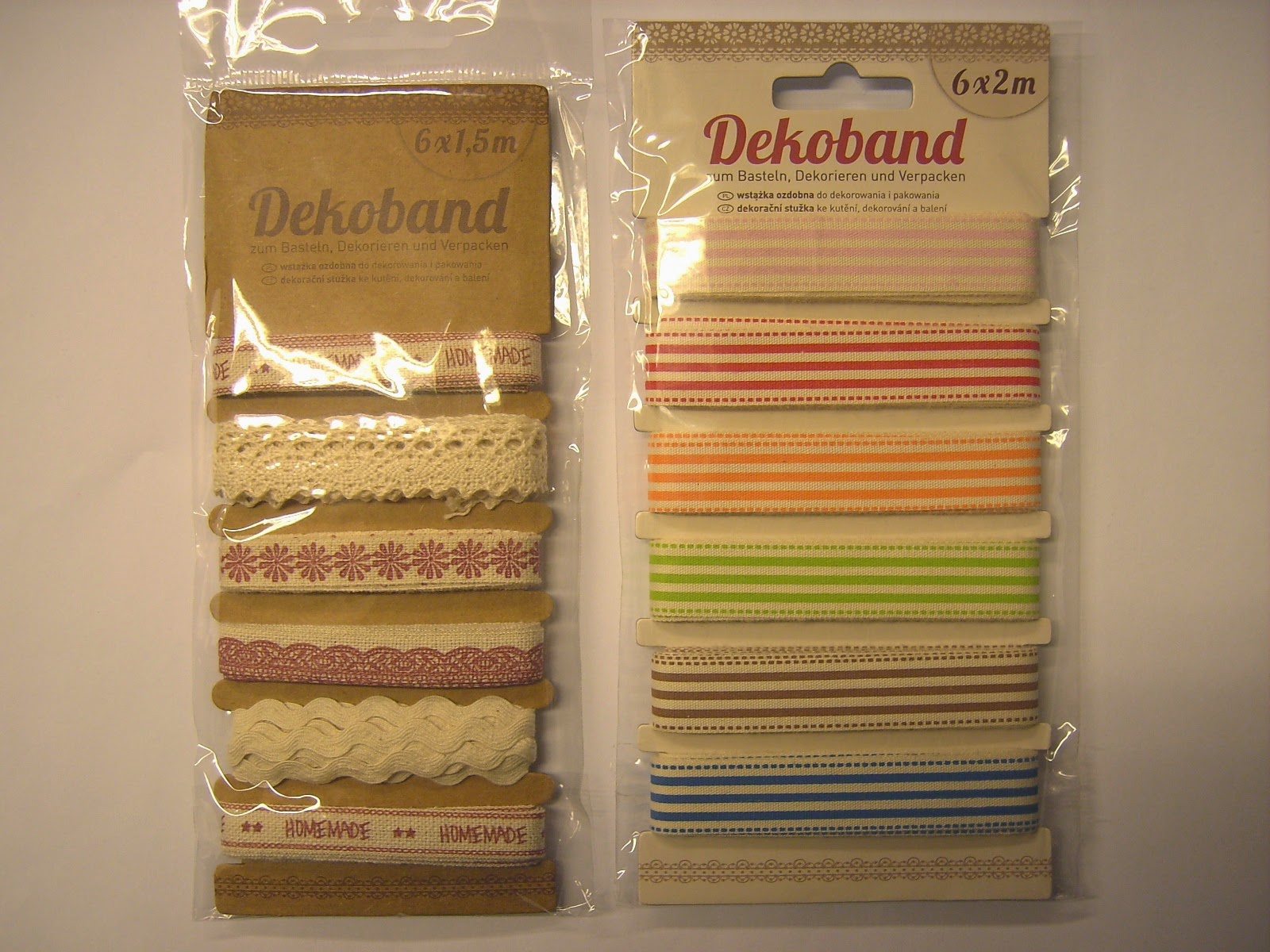 Die eine Packung richtig schön nostalgisch mit Spitze und in rot-natur gehalten und die gestreiften Bänder aus der anderen Packung kann ich mir gut an sommerlichen Näharbeiten vorstellen.
