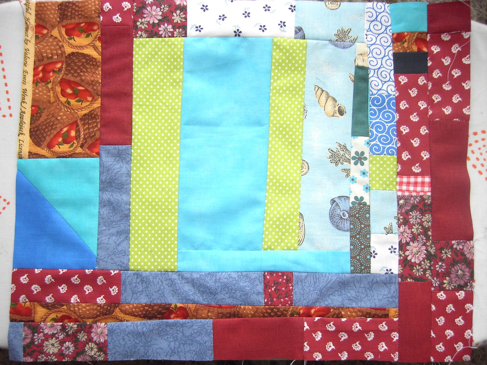 I finally found time to sew together all my fabric scraps. The piece is now as big as a place mat, but I do not have a certain project in mind for it. But it was a lot of fun to sew without any kind of plan. And colorful can never be wrong!